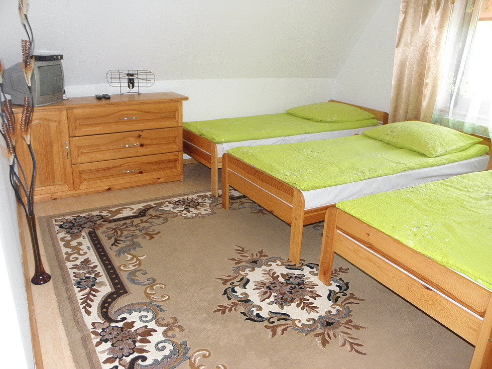 Dla gości przygotowaliśmy pokoje 2 – 4 osobowe, urządzone w nowoczesny, estetyczny sposób. Inspirowane stylem góralskim, urządzone w drewnie z łazienką, telewizją, balkonem i bezprzewodowym Internetem. Cały teren jest ogrodzony. Na naszym terenie znajduje się plac zabaw dla dzieci z basenem o wymiarach 3 x 2m, huśtawką, zjeżdżalnią i piaskownicą oraz zamykany parking.